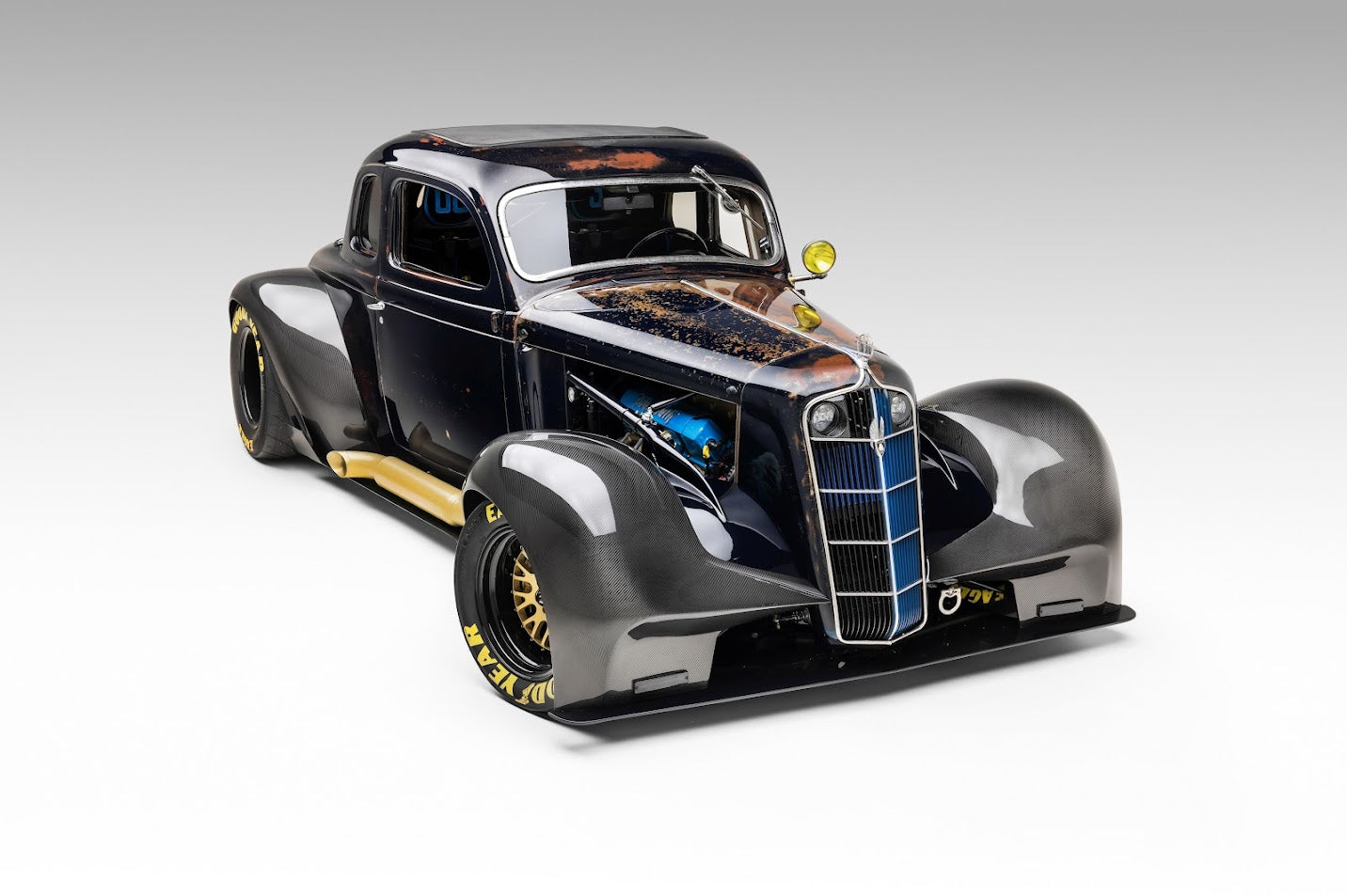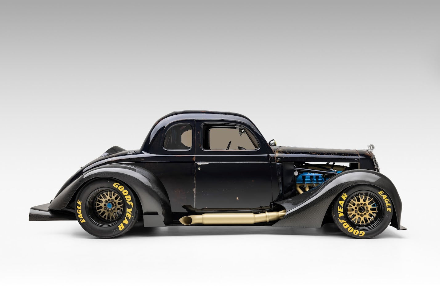 A clean California car, this 1935 Plymouth coupe was the basis for our build. The body is all original, not chopped or cut up. The paint and patina is original. All we did was bury it under clearcoat to protect it for another 90 years.